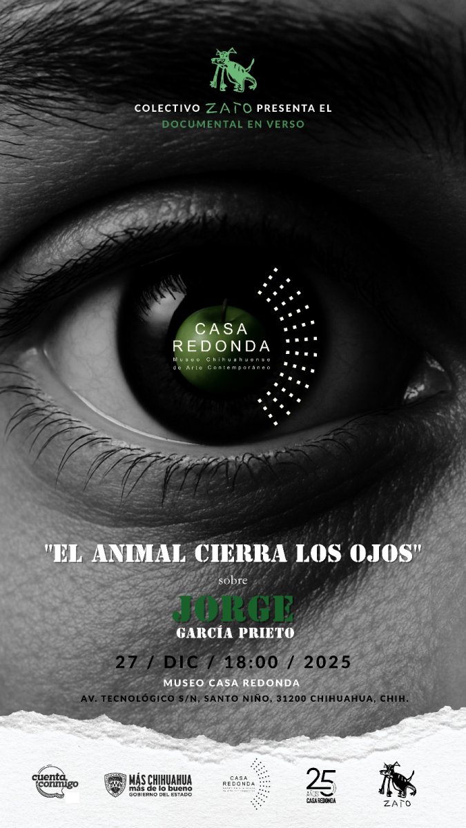El próximo 27 de diciembre, en el Museo Casa Redonda de la capital del estado, será presentado el documental El animal cierra los ojos, centrado en la vida y obra de Jorge García Prieto y realizado por el colectivo de creadores interdisciplinarios “Zato”. El proyecto destaca por su propuesta transmedial que articula la videopoesía.