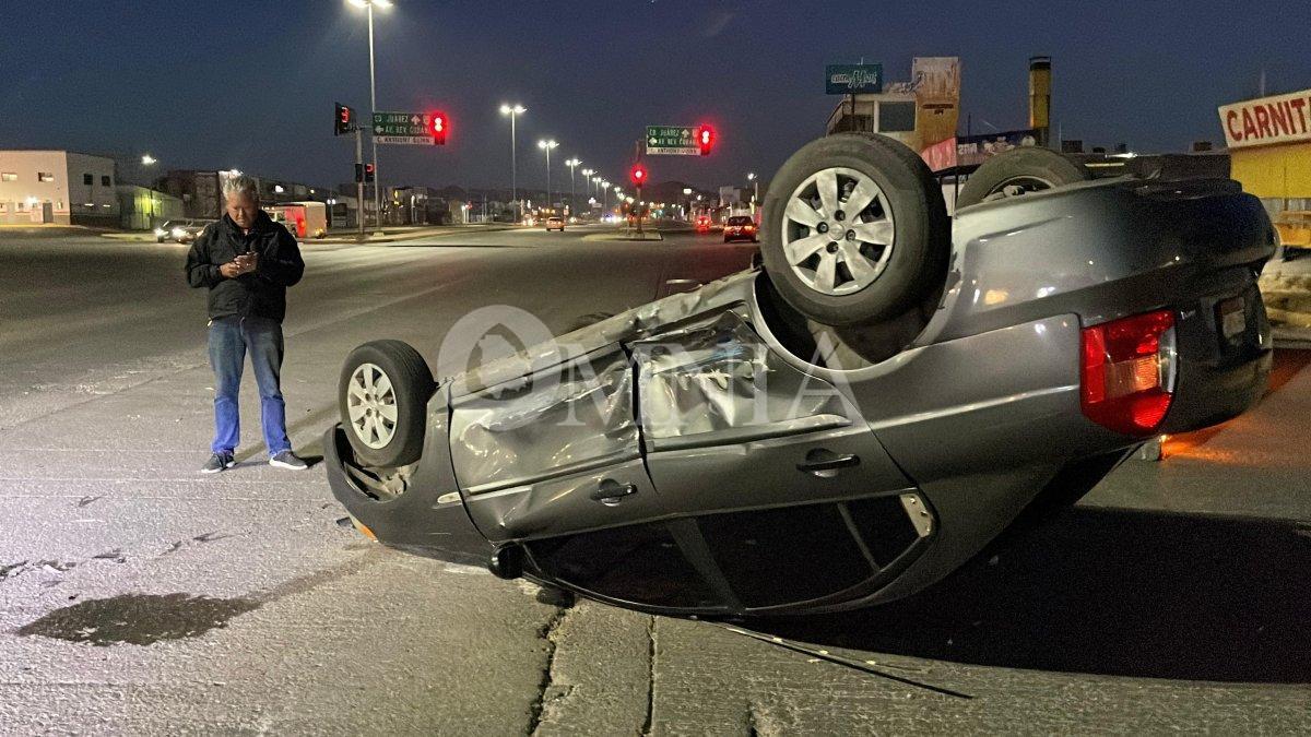 Tras la colisión, el Dodge Attitude terminó volcado, generando alarma entre los automovilistas que circulaban por la zona.