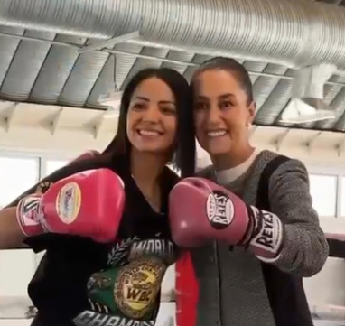 La presidenta de la República, Claudia Sheinbaum en su visita a Ciudad Juárez, sostuvo un encuentro con Diana “Bonita” Fernández, campeona mundial del Consejo Mundial de Boxeo, donde le fueron obsequiados unos guantes y aprendió poco de la disciplina.