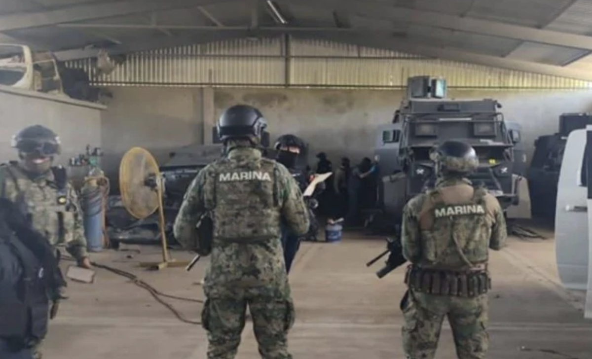 A través de un comunicado, la Marina informó que el operativo se efectuó en un inmueble en el poblado de Coahuayana, donde se aseguraron cinco vehículos con blindaje artesanal denominados “monstruos”, utilizados comúnmente por grupos de la delincuencia organizada, y tres más con blindaje comercial, así como una base para armamento.