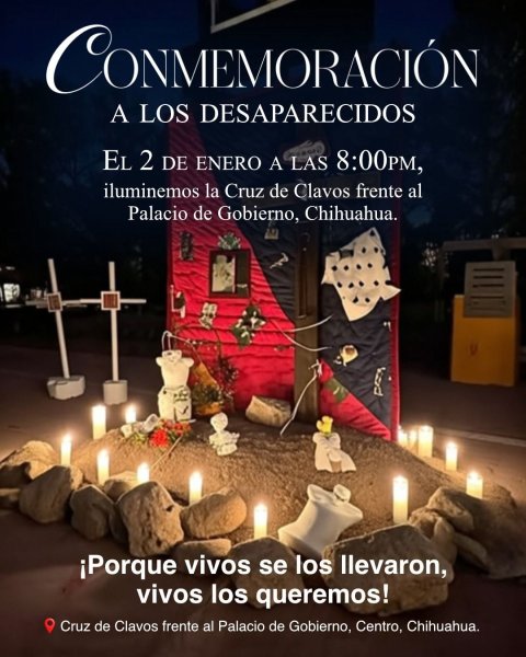 La cita es este próximo 2 de enero a las 8:00 pm en la Cruz de Clavos, la que pretenden “iluminar” con velas, esto como gesto de conmemoración por las personas que han desaparecido en los últimos años.