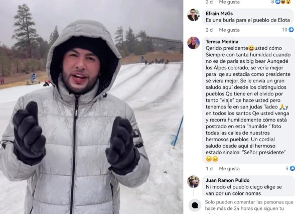 A quien le llovieron críticas fue al alcalde de Elota, Sinaloa, Richard Millan, por mandar su mensaje navideño desde el Big Bear Lake, en California, en el video se puede observar que se encuentra esquiando en el lugar, lo que provocó fuertes críticas en su clip difundido en redes sociales.