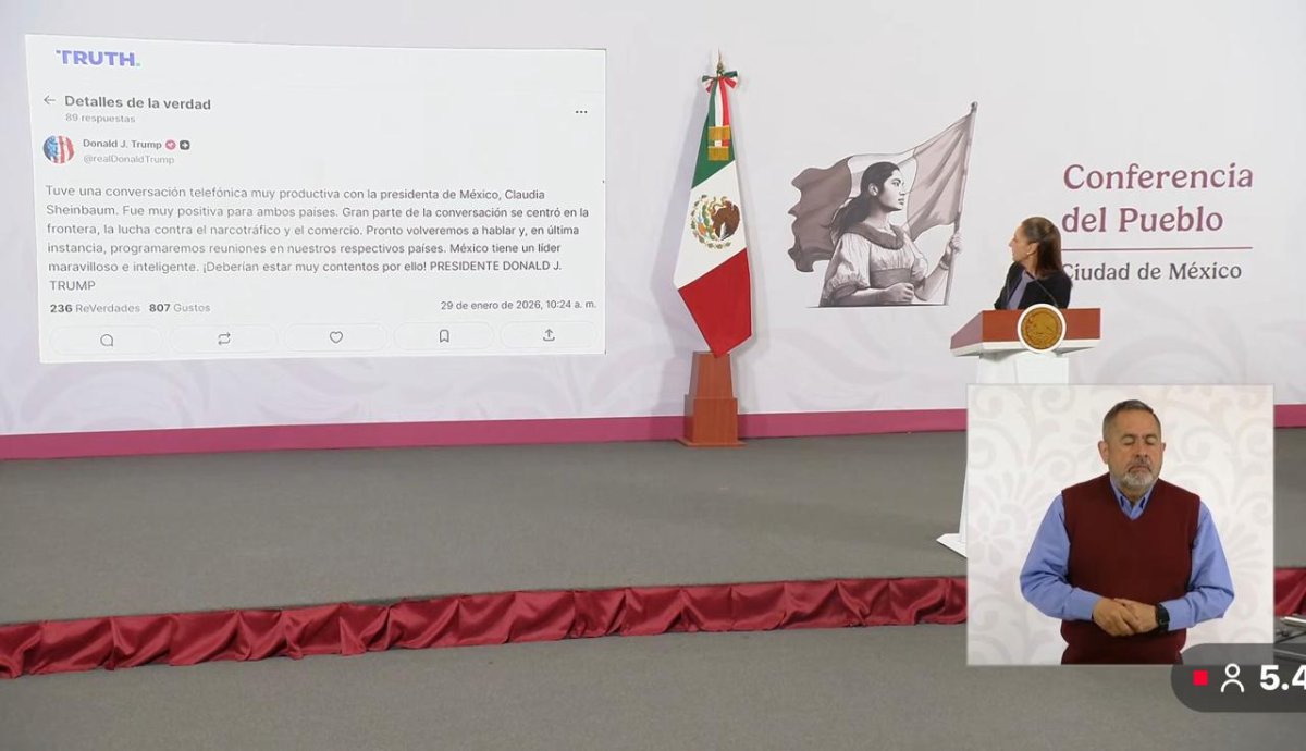 Tuve una conversación telefónica muy productiva con la presidenta Claudia Sheinbaum, de México. Fue muy positiva para ambos países. Gran parte de ella se centró en la frontera, la lucha contra el narcotráfico y el comercio. Volveremos a hablar pronto y, en última instancia, organizaremos reuniones en nuestros respectivos países. México tiene una líder maravillosa y muy inteligente, ¡deberían estar muy contentos por ello! - PRESIDENTE DONALD J. TRUMP
