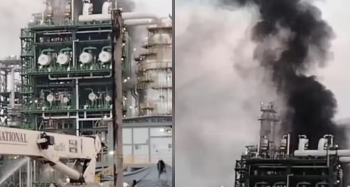 En la refinería Olmeca, ubicada en el complejo de Dos Bocas, se registró un conato de incendio derivado de una falla en una línea de descarga.