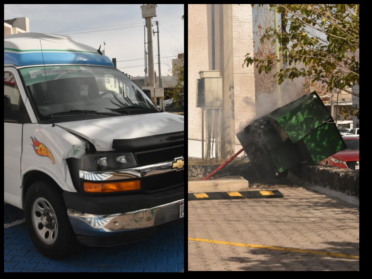 De acuerdo con el reporte, el conductor de una camioneta Chevrolet Savana impactó de manera accidental el equipo eléctrico tras confundir el pedal del freno con el del acelerador, lo que originó un cortocircuito y el inicio de un incendio en el lugar.