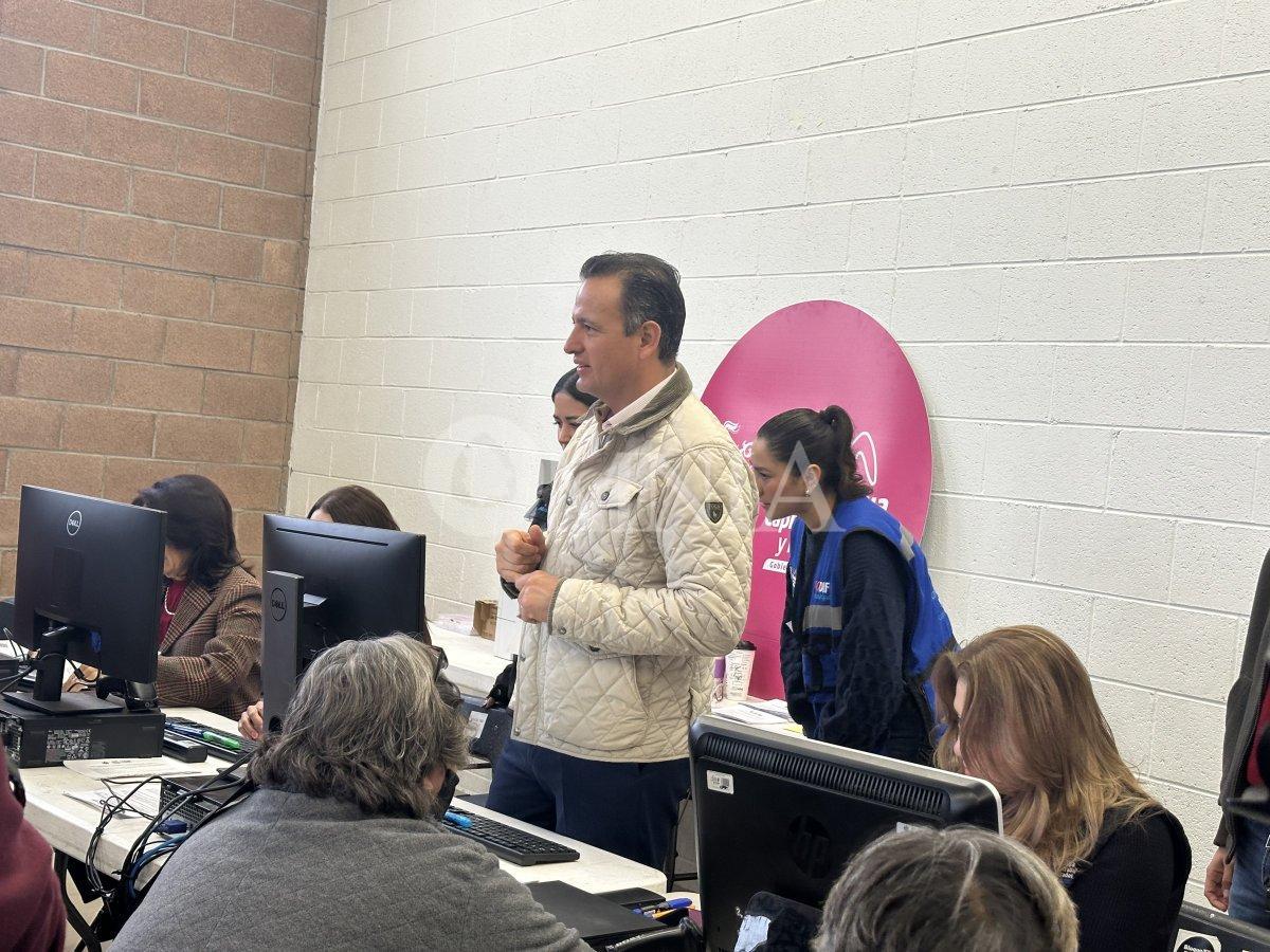 El alcalde Marco Bonilla, acudió a primera hora de este lunes al CEDEFAM Punta Oriente, para acompañar a la Presidenta del DIF Municipal, Karina Olivas, al arranque de recepción de documentos para la convocatoria del Programa Alimentario del Adulto Mayor 2026.