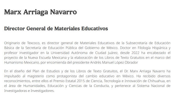 En el portal de gobierno se menciona que el creador de los controversiales libros de texto fue docente e investigador de la máxima casa de estudios de la ciudad fronteriza por más de una década.