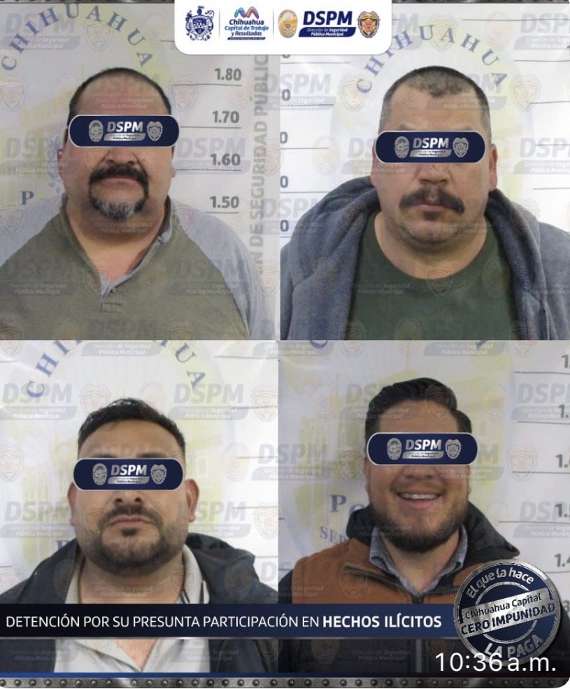 Los detenidos se identificaron como David Fernando A. G., de 28 años, Reydesel Rodolfo M. L., de 51, Manuel Iván P. S., de 33 y Óscar Manuel F. U., de 45 años. Todos trasladados al Centro de Detención Municipal Zona Sur para su puesta a disposición correspondiente.
