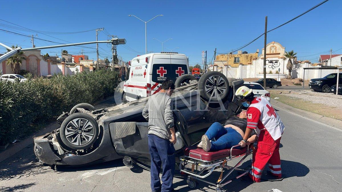 Un aparatoso accidente se registró la tarde de este día sobre la avenida Paseos del Real, poco antes de llegar a la avenida Los Portales, donde un vehículo terminó volcado tras perder el control.