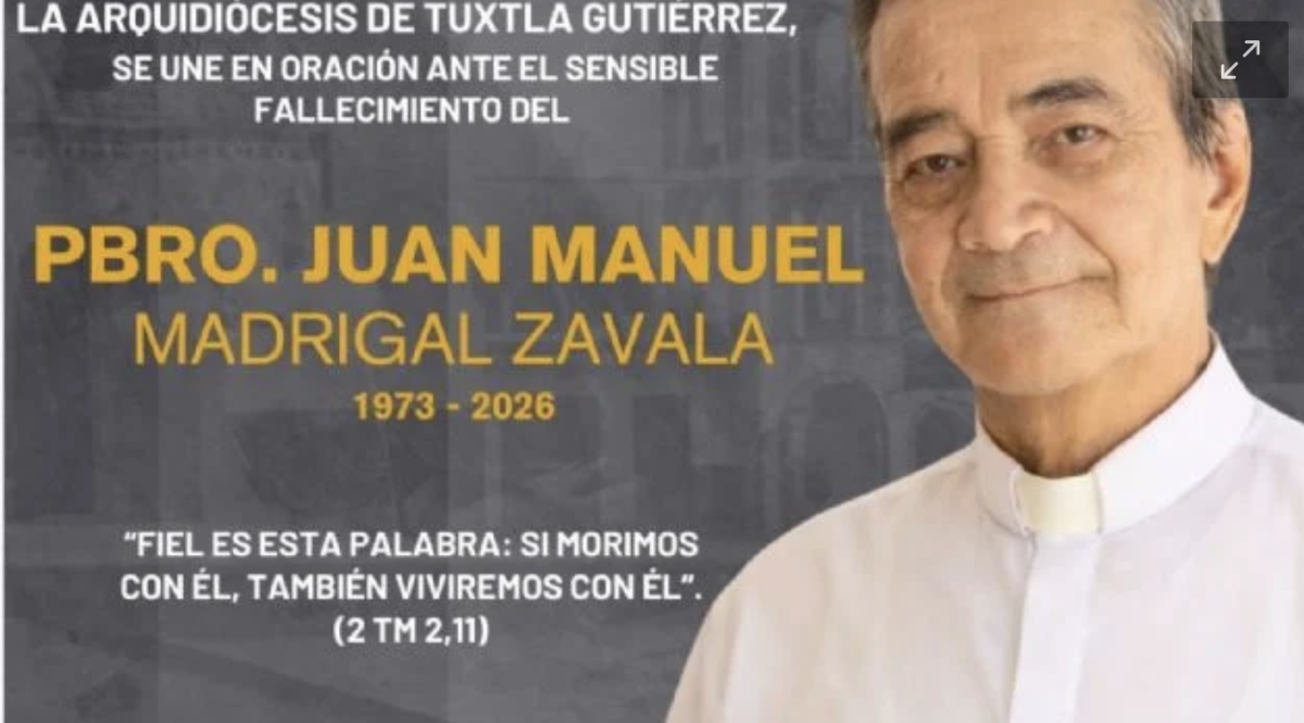 “De forma inesperada, y aun sin saber los modos, fallece el presbítero Juan Manuel Zavala, vicario parroquial en San Marcos Evangelista, Ocotepec, Chiapas", expresó el prelado.