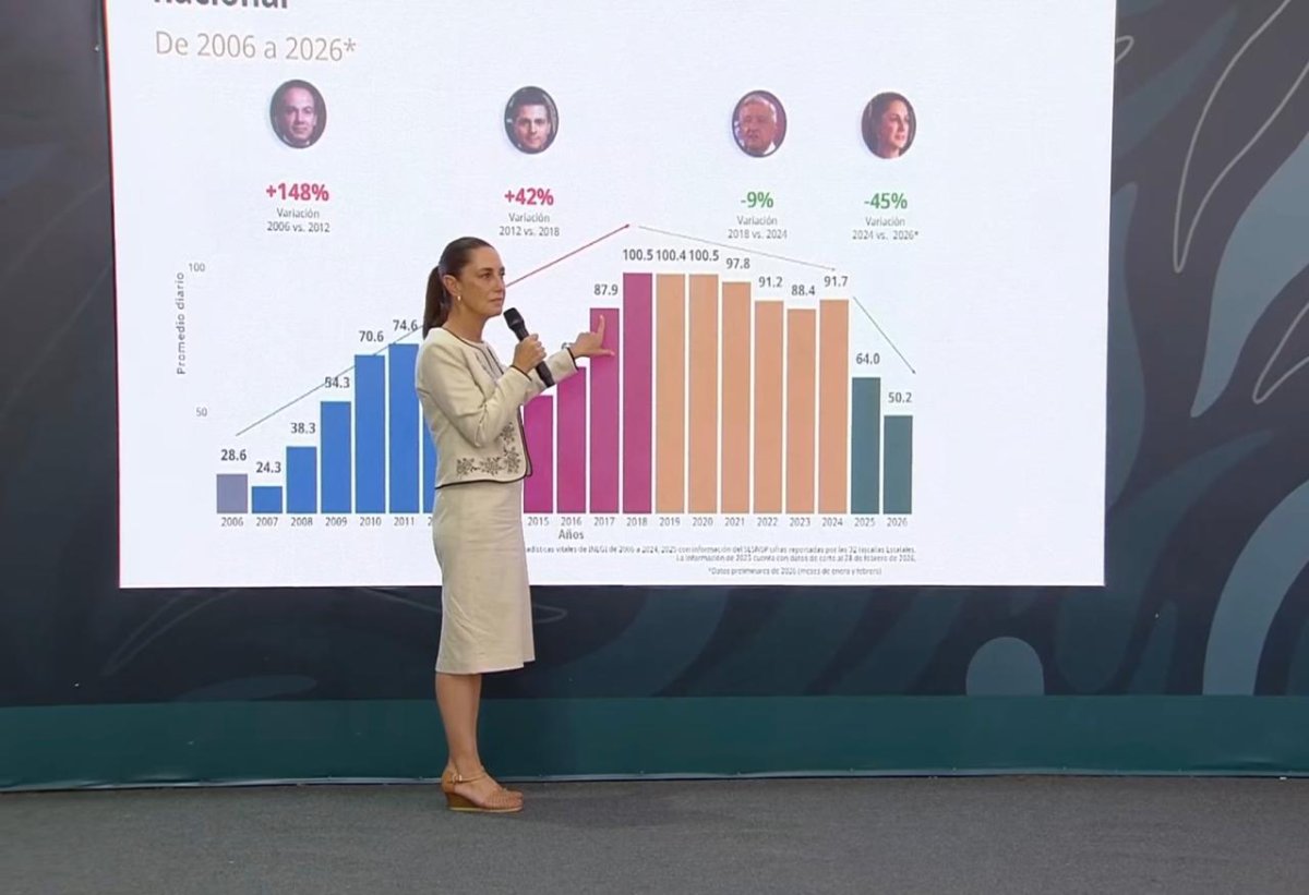 Marcela Figueroa, titular del Secretariado Ejecutivo del Sistema Nacional, informó la disminución de los homicidios dolosos en 25 por ciento entre 2024 y 2026.