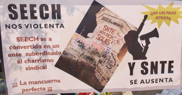Las pintas supuestamente contra el SNTE visibles correspondían a intervenciones realizadas durante el 8M, una fecha cargada de simbolismo por las manifestaciones feministas que año con año dejan huella en los espacios públicos, pero esta lona no mostraba pintas recientes contra el sindicato, sino una edición que reutilizaba un escenario previo para reforzar un mensaje distinto…