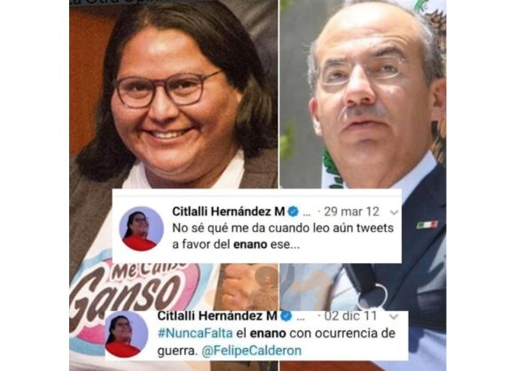 En redes sociales circulan capturas de pantalla de presuntas publicaciones de Citlalli Hernández, actual Secretaria de las Mujeres en Morena, en las que se refería de manera despectiva a la apariencia física del expresidente Felipe Calderón.