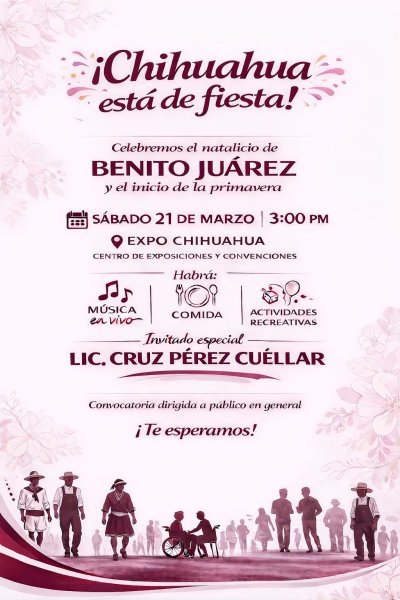 Llamó la atención que en medio de sus aspiraciones para contender por la gubernatura de Chihuahua, el alcalde fronterizo, Cruz Pérez Cuéllar, invitó a la ciudadanía a un evento por el natalicio de Benito Juárez.