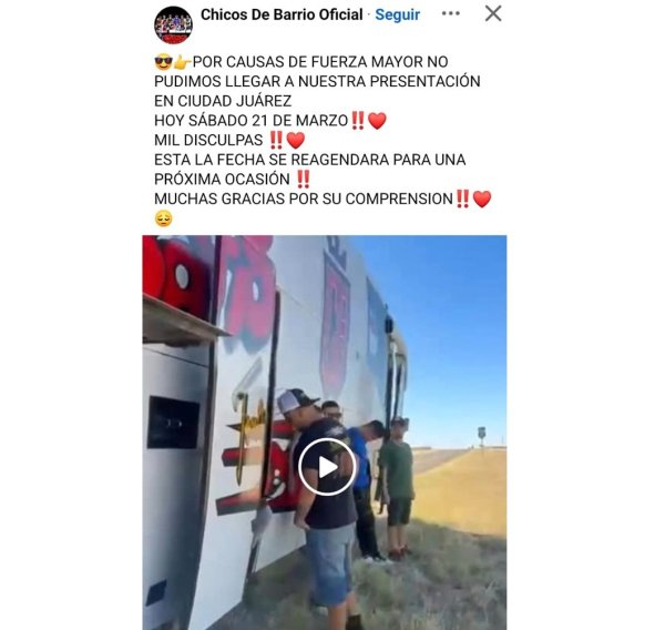 Pero los "Chicos de Barrio de Dimas Maciel" no llegaron al evento de Andrea, el camión en el que viajaban se descompuso.
