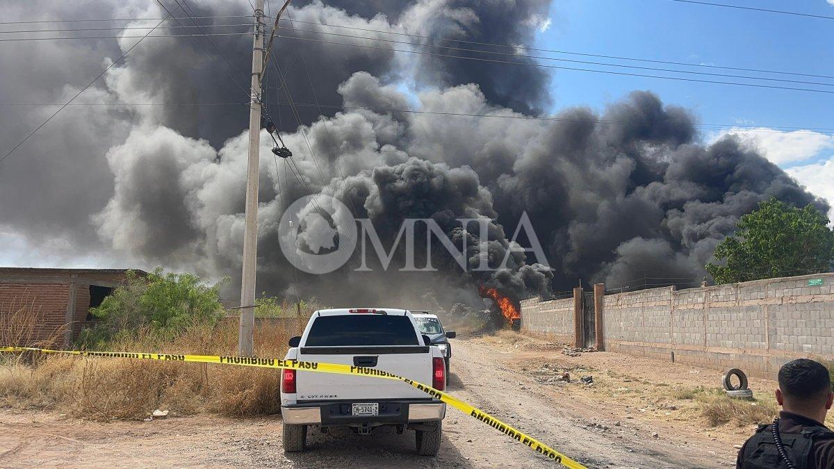 Un fuerte incendio se registró en un predio baldío ubicado en el cruce de las calles Valle de Palmira y Valle de la Concha, en la colonia Granjas del Valle, al norte de la ciudad, donde se encontraban acumuladas decenas, si no es que cientos de llantas.