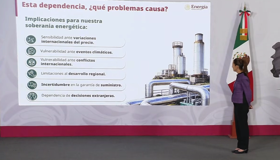 El gobierno federal reconoció que el gas natural se ha convertido en un elemento estratégico para el desarrollo económico del país, aunque actualmente México depende en gran medida de importaciones, principalmente provenientes de Estados Unidos, por lo que se presentó una estrategia energética, centrada en aumentar la producción nacional y reducir riesgos derivados de la dependencia externa.