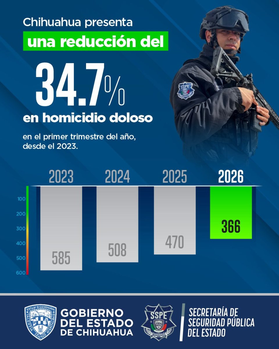 Como resultado de la estrategia de seguridad para la prevención del delito, impulsada por el Secretario Gilberto Loya, el Estado de Chihuahua mantiene una baja sostenida de un 34.7% en el delito de homicidio doloso.