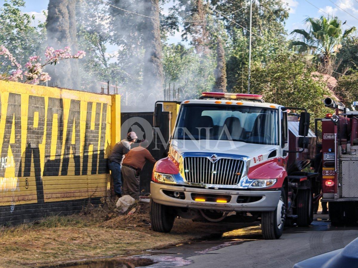Un tráiler fue consumido en gran parte por un incendio registrado en un taller de reparación ubicado sobre la calle Sierra del Cuervo, casi en el cruce con el periférico Vicente Lombardo Toledano.